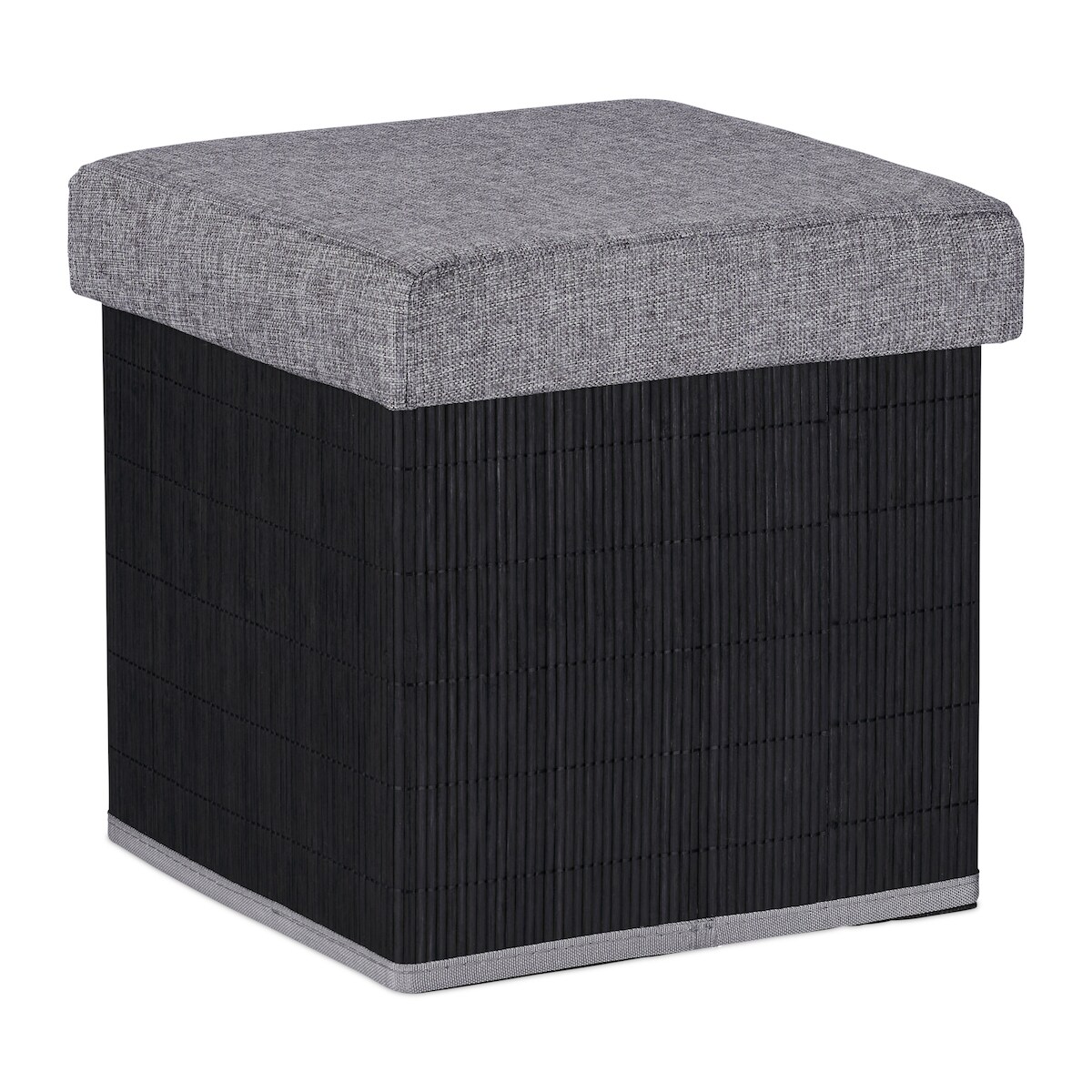 Relaxdays Sitzhocker mit Stauraum, gepolstert, faltbar, Bambus, Stoff, HxBxT: 36 x 35 x 35 cm, Sofahocker, schwarz/grau