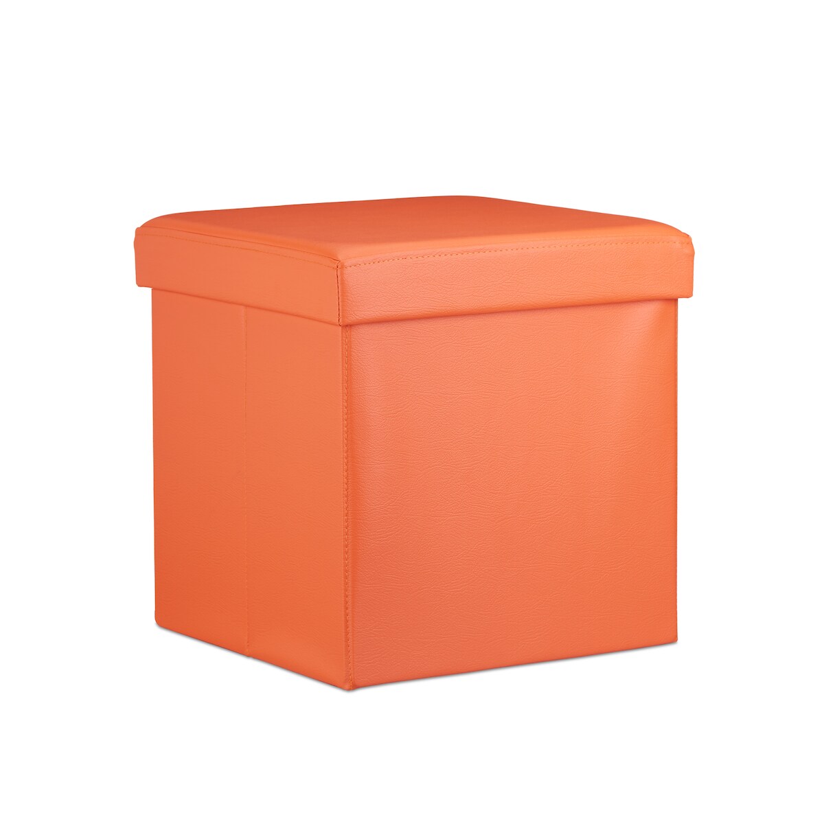 Relaxdays Faltbarer Sitzhocker, Sitzcube mit Stauraum, Fußablage, Sitzwürfel aus Kunstleder, HBT 38 x 38 x 38 cm, orange