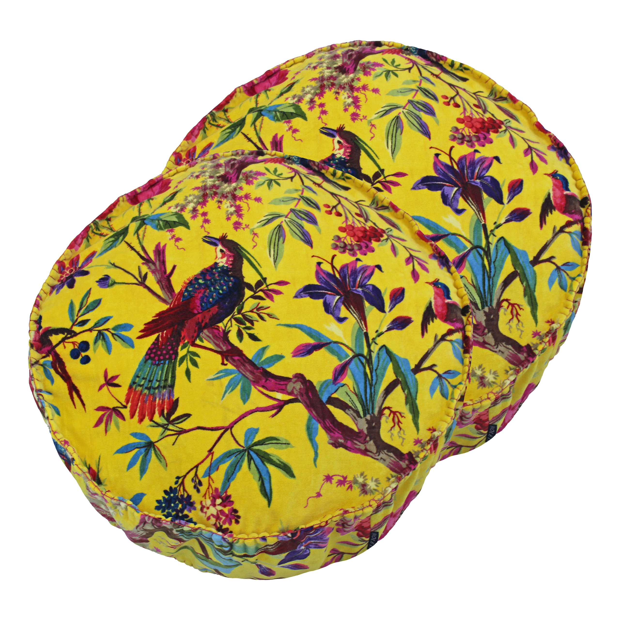 Paoletti Paradise Round Cushions (twin Pack) - Yellow Cotton - Size 50 cm x 12 cm | Paoletti Sale | Discount Designer Brands