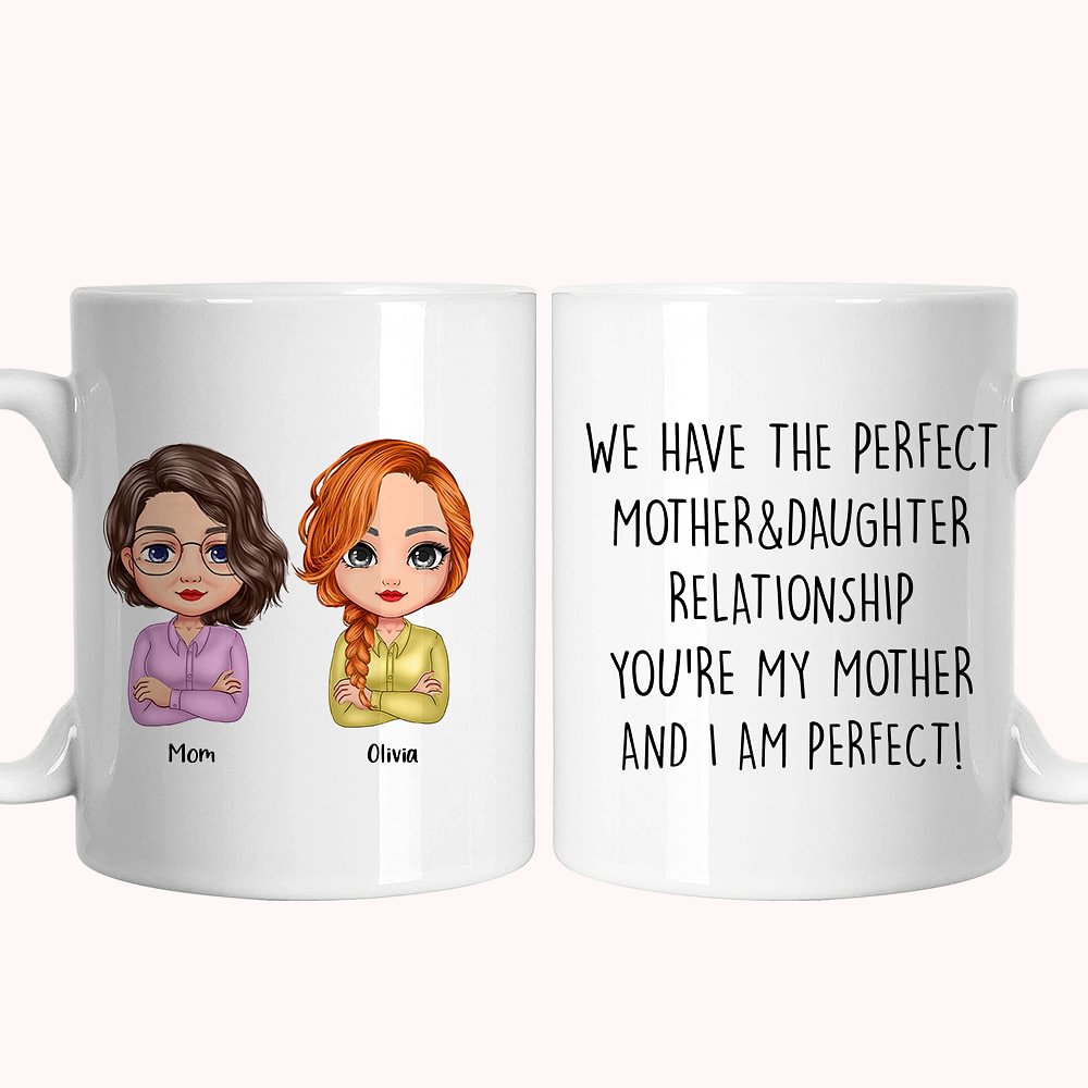 Personalisierte We Have The Perfect Mother And Daughter Relationship Weiße Keramiktasse, Geschenk für Mutter, spülmaschinen- und mikrowellenfest