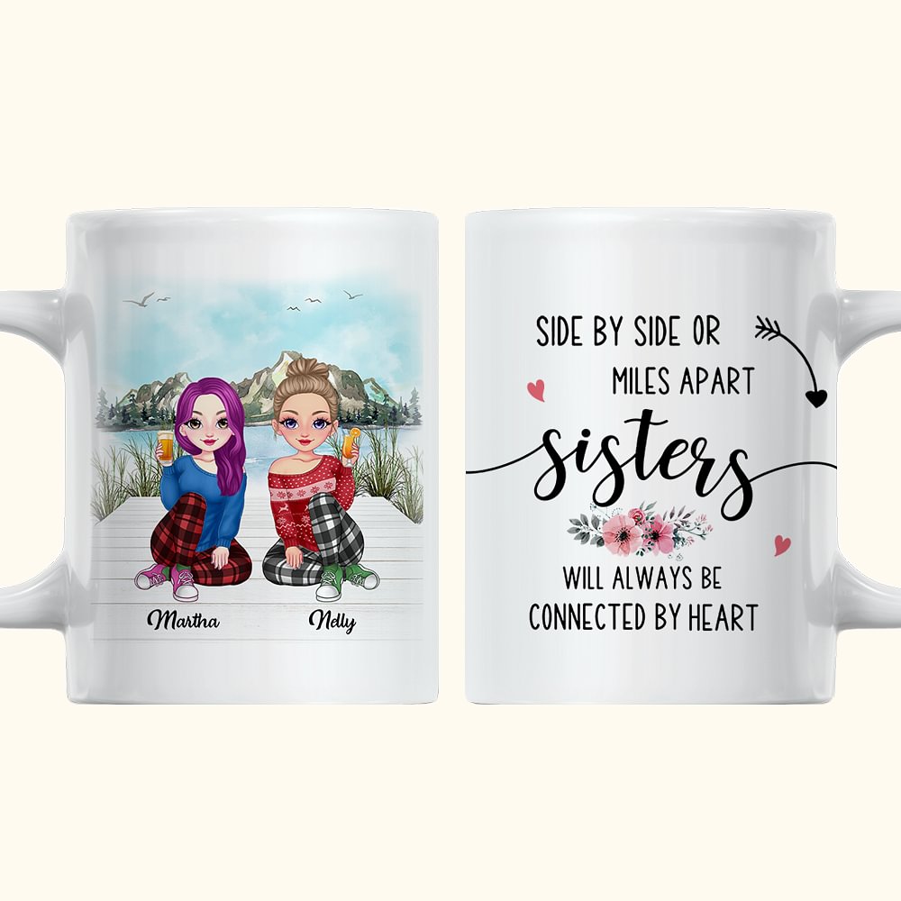 Personalisierte Besties Will Always Be Connected By Heart Mountain Lake View, weiße Keramiktasse, Geschenke für Freunde, spülmaschinen- und mikrowelle