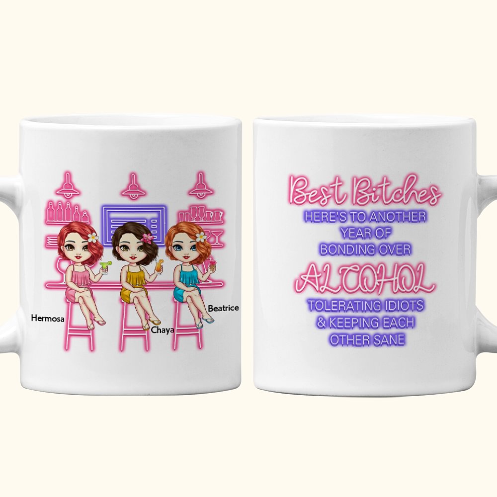 Personalisierte Best Bitches Besties Freundschaftsfeier, weiße Keramiktasse, Freundschaftsgeschenk, spülmaschinen- und mikrowellenfest