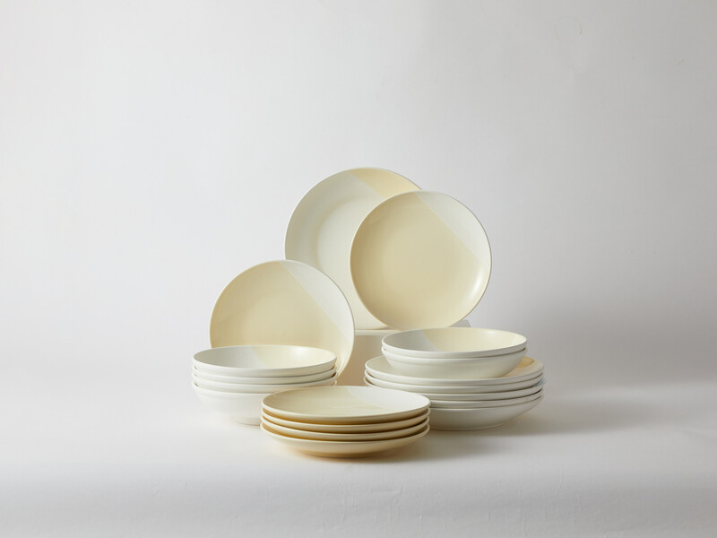 JIWOO Nicole Geschirrset Gelb+Weißn, 16er / Set, Wertpaket, (6 Stück 8-Zoll-Salatteller + 6 Stück 8-Zoll-Essteller + 6 Stück 10-Zoll-Essteller),Spülmaschinen- und mikrowellengeeignet