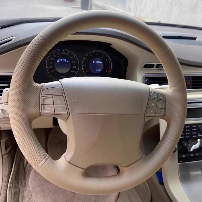 For Volvo S80 2006-2009 XC70 2007-2010 V70 2009 Hand-stitched beige Leather non-slip Car Steering Wheel Cover