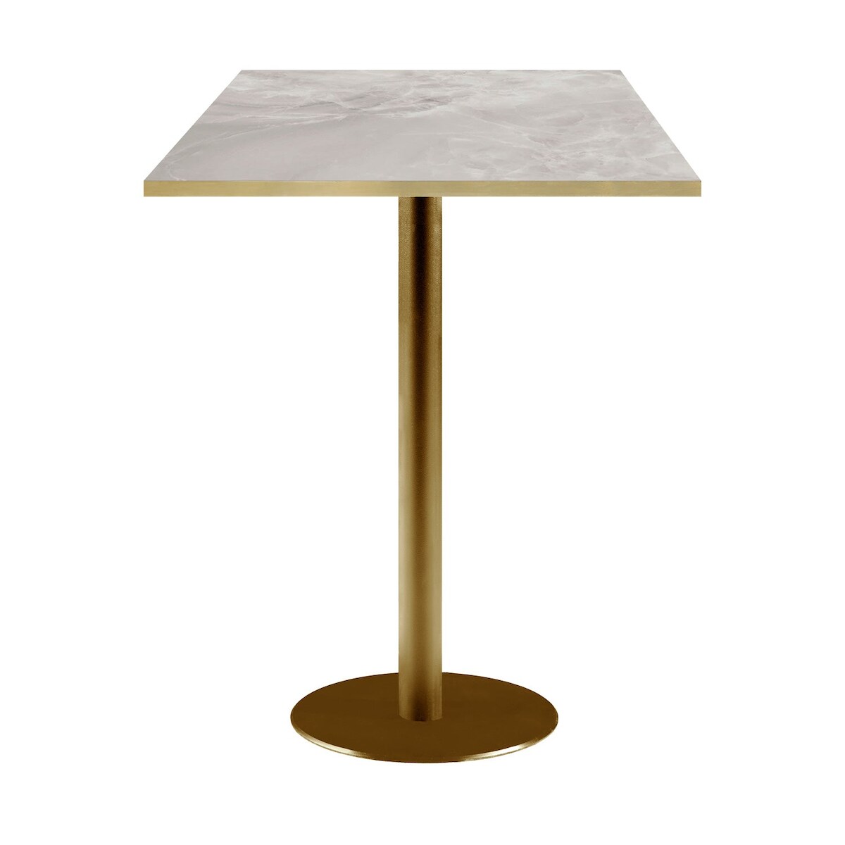 RestooTab - Stehtisch Rome goldmetallic 60x60 Dekor Marmor perla Kanten messingfarben