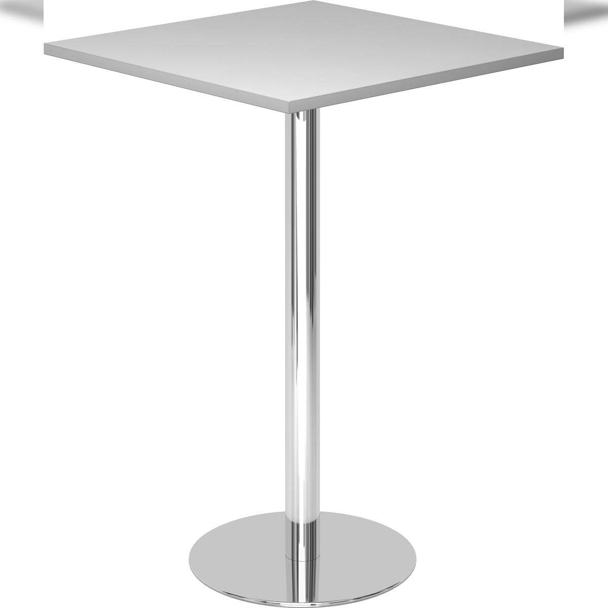 bümö Stehtisch Büro, Bistrotisch eckig 80 x 80 cm - Bartisch grau, Stehtisch Holz-Platte, Säule aus Metall verchromt, Buffettisch, Säulentisch,
