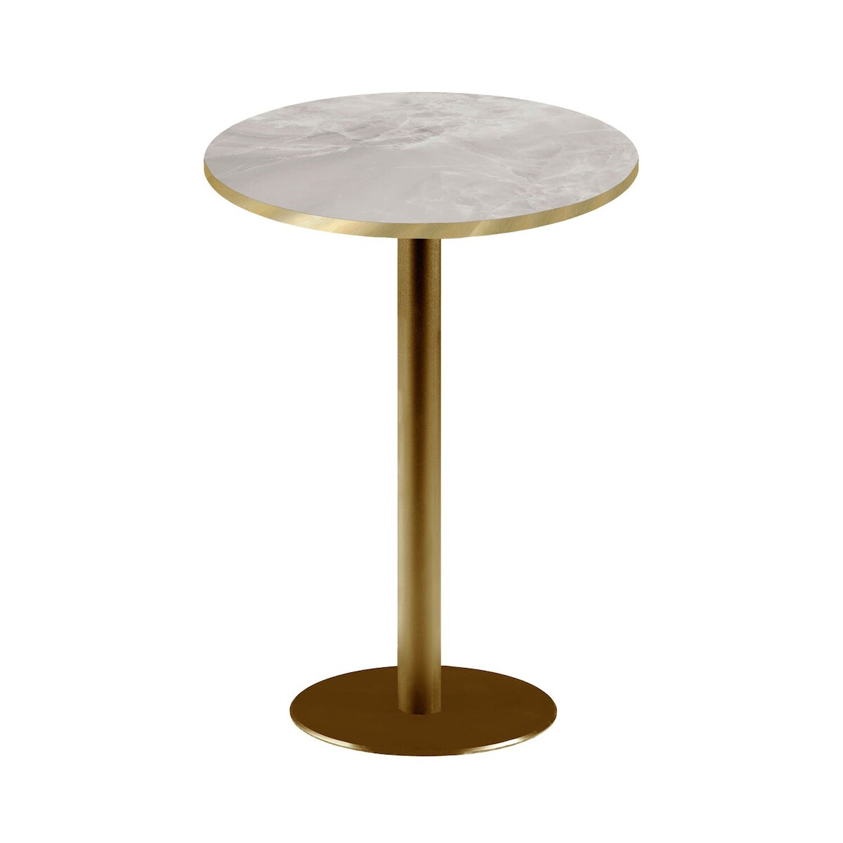 RestooTab - Stehtisch Rome goldmetallic Ø60 Dekor Marmor perla Kanten messingfarben