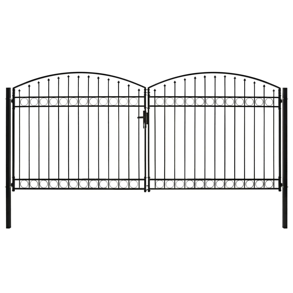 vidaXL Zauntor Doppelflügel Gewölbte Spitze Stahl 400 x 200 cm Schwarz