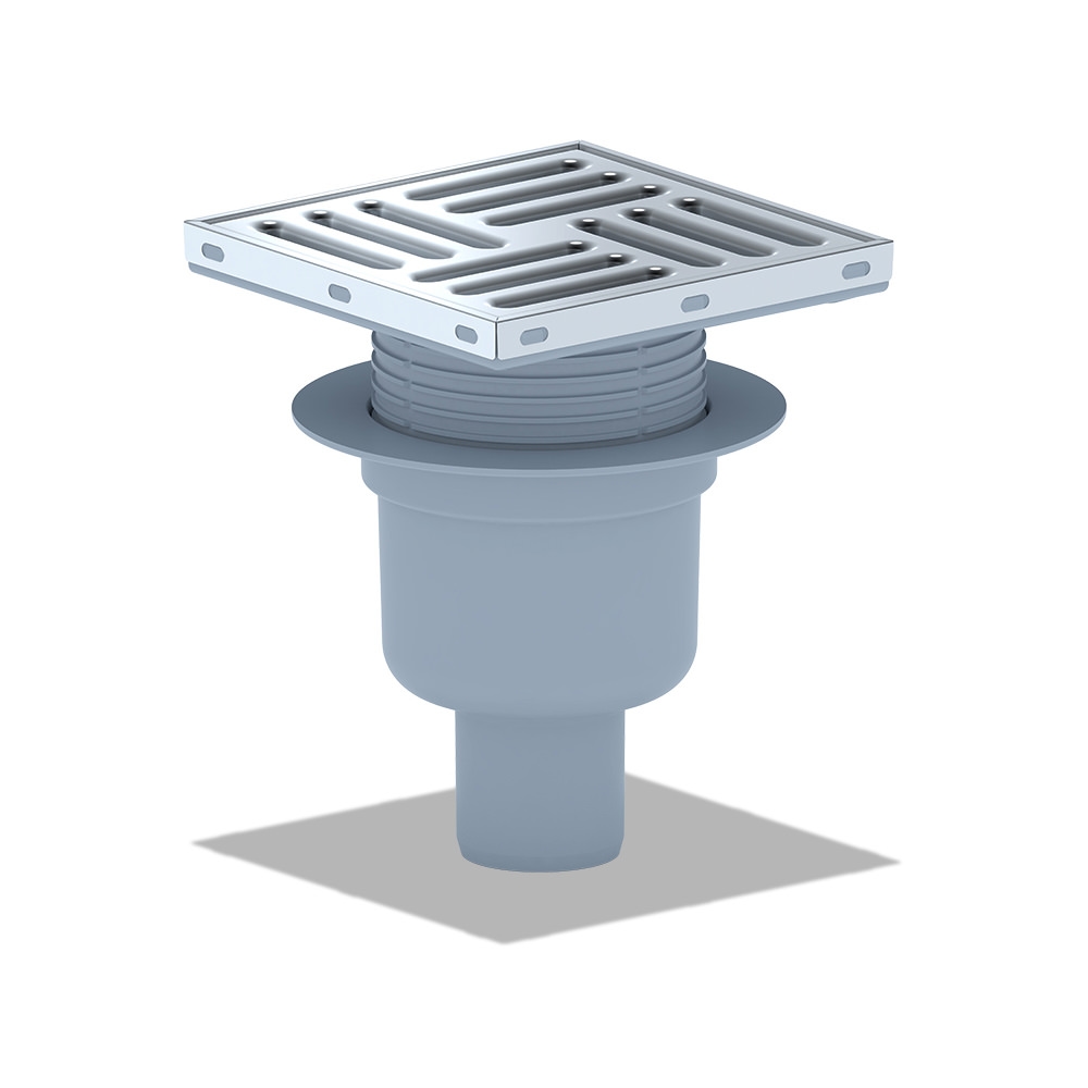 Belvit Bodenablauf Edelstahl Durchgang 150x150 mm höhenverstellbar 155-188 mm DN50