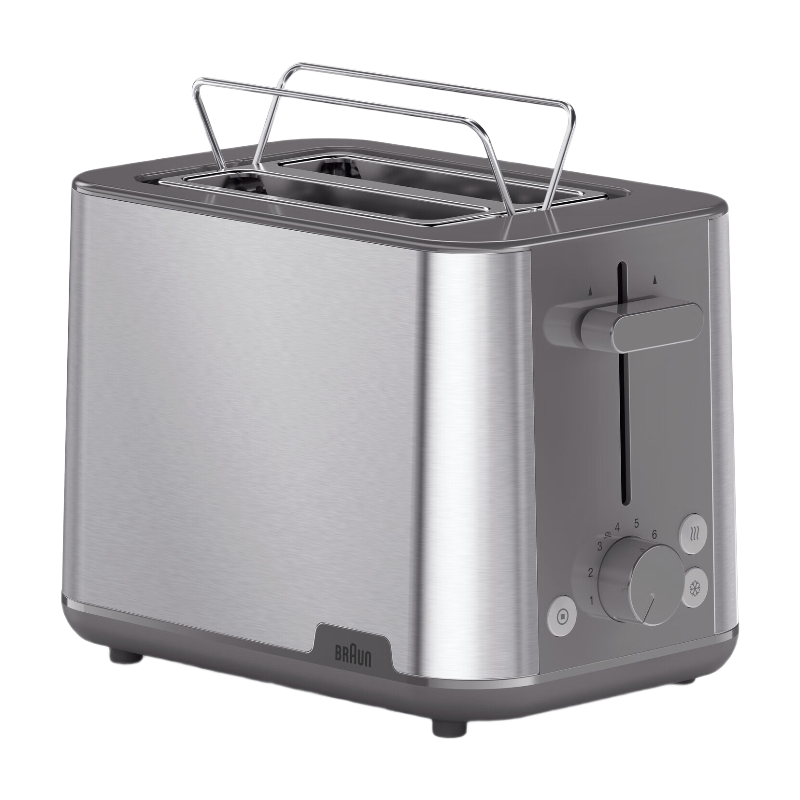 Braun PurShine HT1510GY 2-Scheiben-Toaster, 8 Bräunungsstufen, Aufwärm- und Auftaufunktion, Krümelschublade, 900 W, Grau