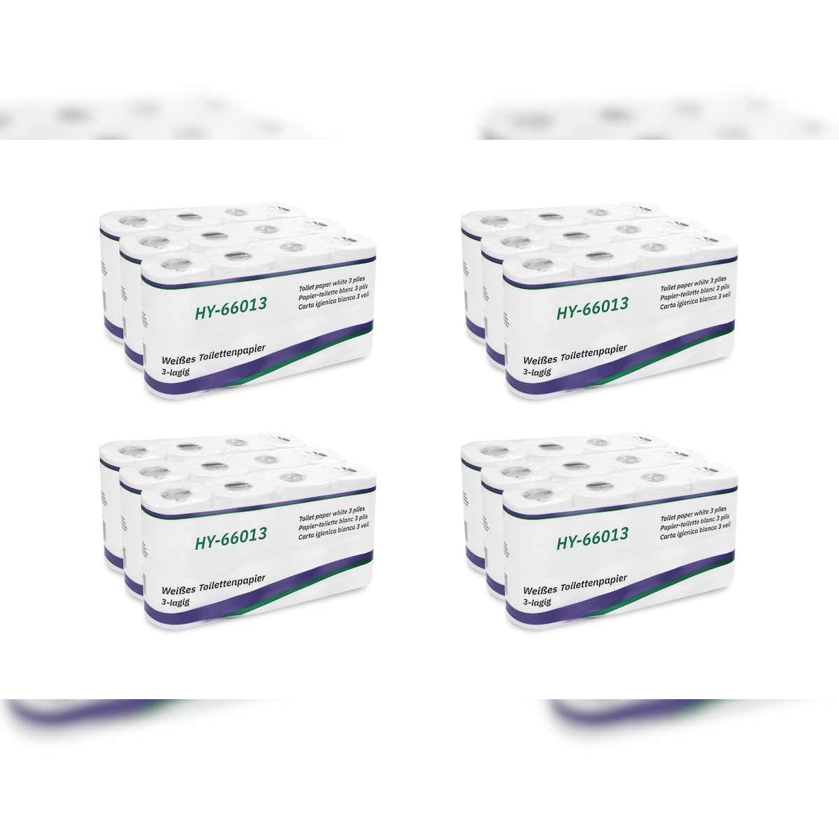 Toilettenpapier Huchtemeier, weiß, 100 % Zellstoff, 4-lagig, 150 Blatt, 9x8=72 Rollen im Folienbeutel #T4-150-Z-28VE
