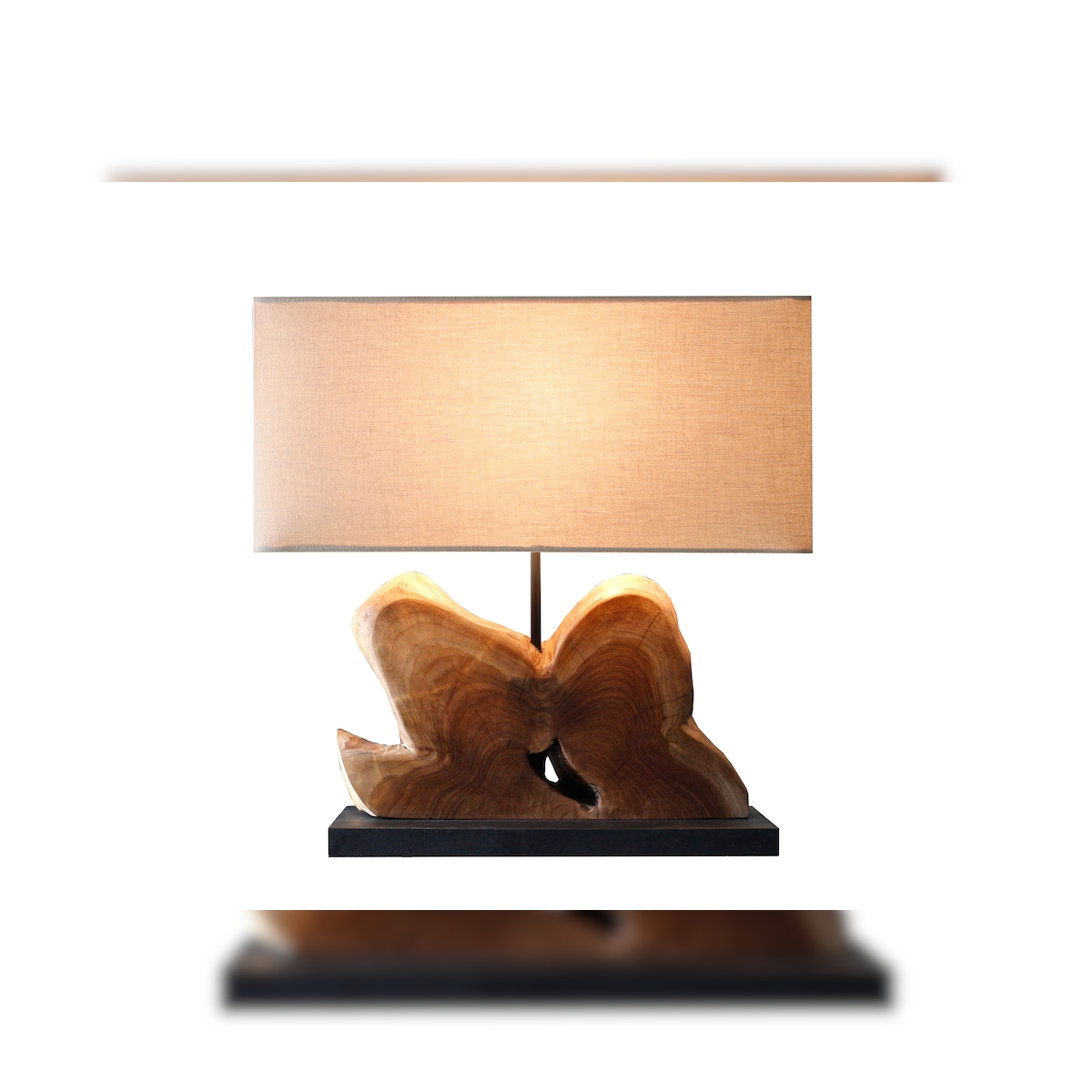 SalesFever Tischleuchte |Gestell Treibholz / Schirm Leinen | B 80 x T 20 x H 59 cm | Natur – Beige