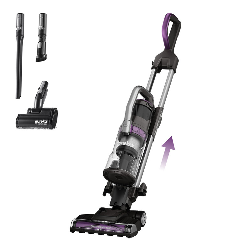 Eureka NEU800 Upright Vacuum Cleaner with Lift-Away & QuickShift Technology, Anti Hair Wrap, Dual Cyclone Filtration, Anti-Allergen, LED Headlights, Pet Turbo Brush, Crevice & Dusting Tool – Black & Purple