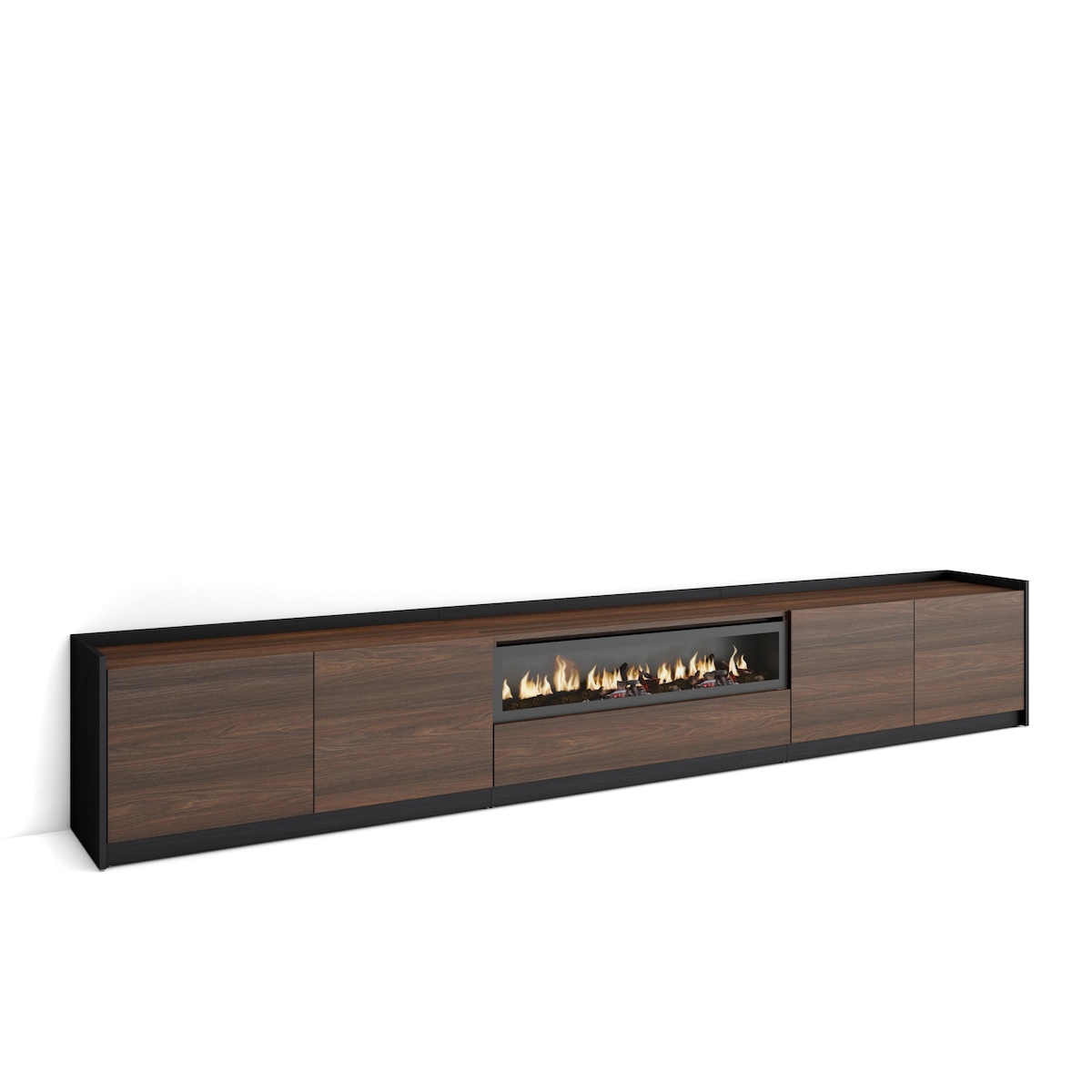 SKRAUT HOME TV-Schrank, Lowboard, für Wohnzimmer und Esszimmer, 310x50x37 cm, Für TV-Geräte bis zu 80", Elektrokamin., Moderner Stil, Dunkler Eiche und Schwarz