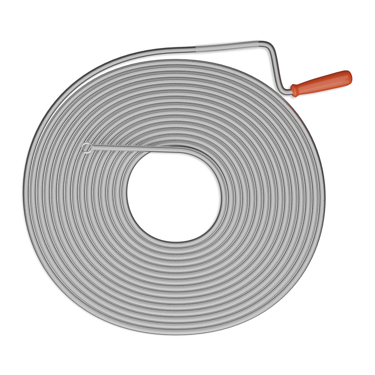 Relaxdays Rohrreinigungsspirale 15 m, für Waschbecken, WC, Dusche, Badewanne, Abflussreiniger Spirale, Stahl, silber/rot