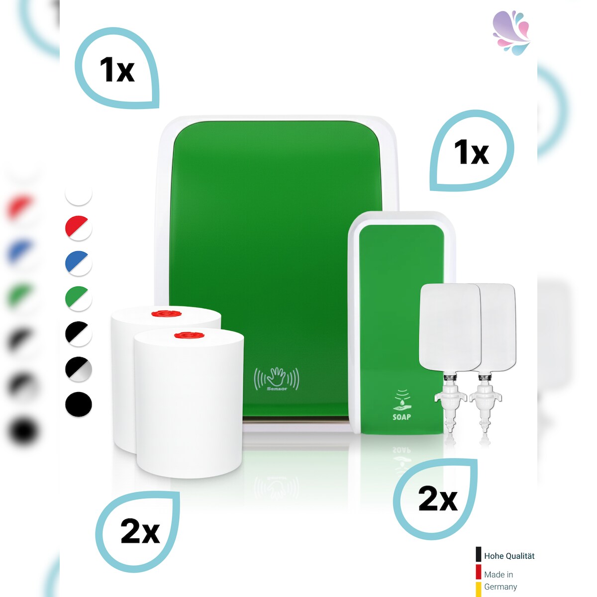 Blanc HYGIENIC KOMPLETT-SET Waschraum SENSOR: Handtuchrollenspender SENSOR + 2 TAD Handtuchrollen + Schaumseifenspender SENSOR + 2 Kartuschen