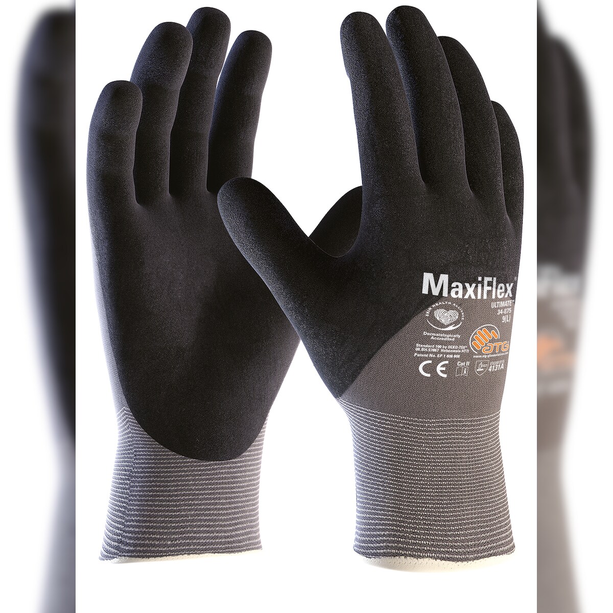 ATG `MaxiFlex Ultimate` 3/4 beschichtet, Nylon-Strickhandschuhe, Nitril beschichtet,Kat. 2 (34-875) - Größe 9 (L)