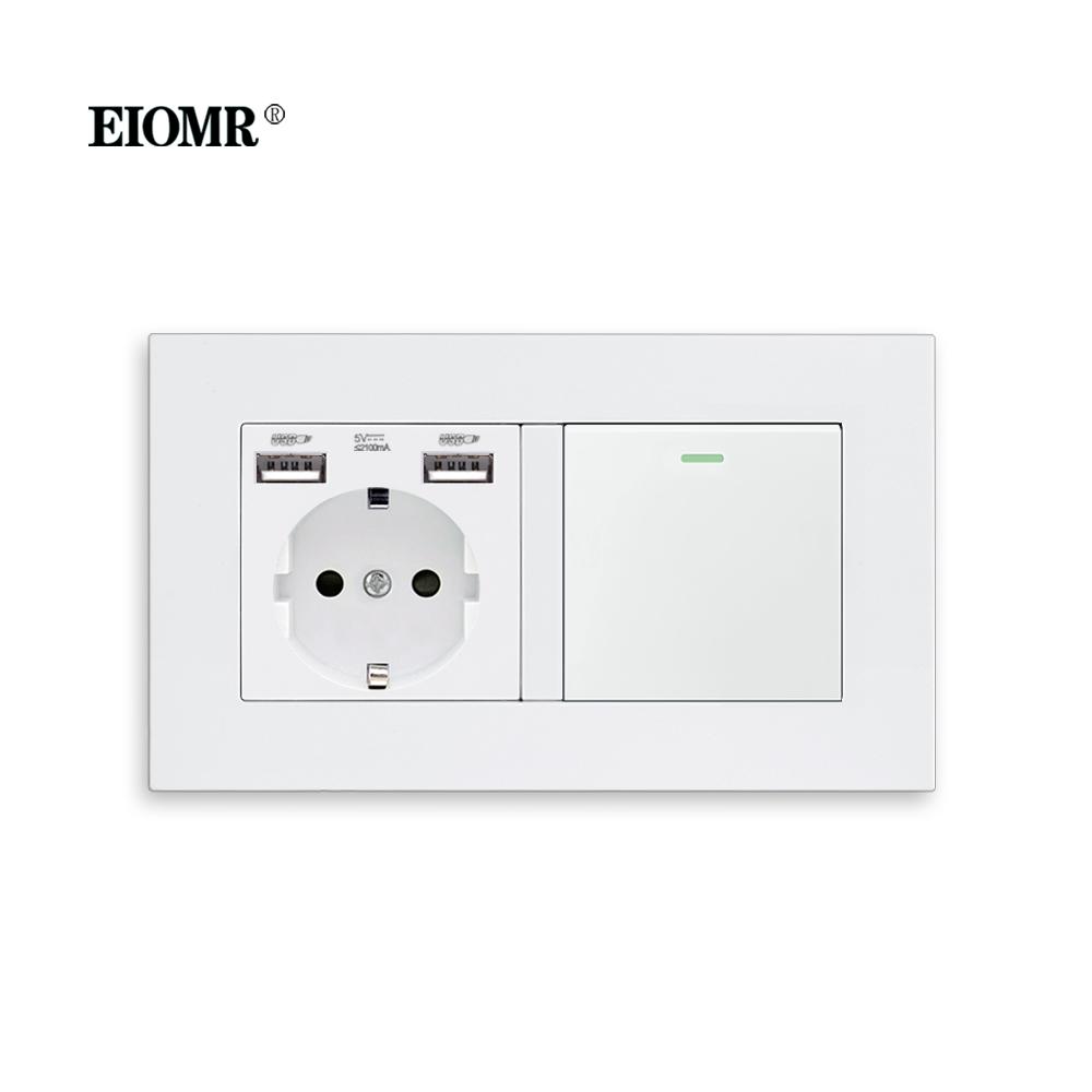 EIOMR EU-Standard Schalter Steckdose 1-fach 1-Weg/2-Wege 16A Lichtschalter Weiß Doppelrahmen Panel Wand-Einbau USB Pop-Steckdose