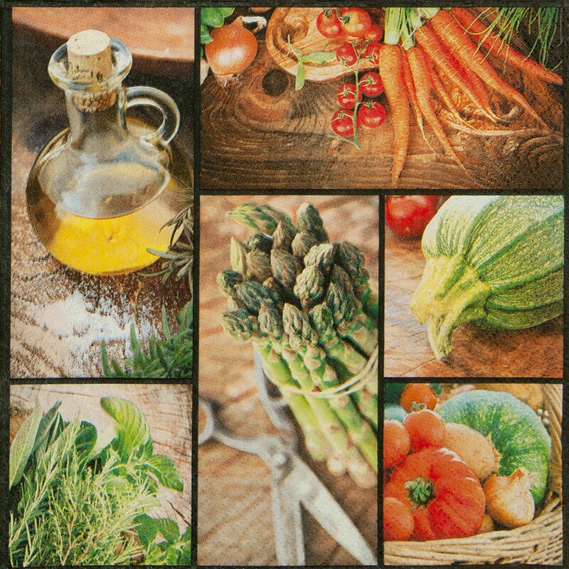 Home Fashion, Fresh Vegetables, Lunch-Servietten aufgefaltetes Maß 33 cm x 33 cm, im Viertelfalz, 20 Stück pro Pack