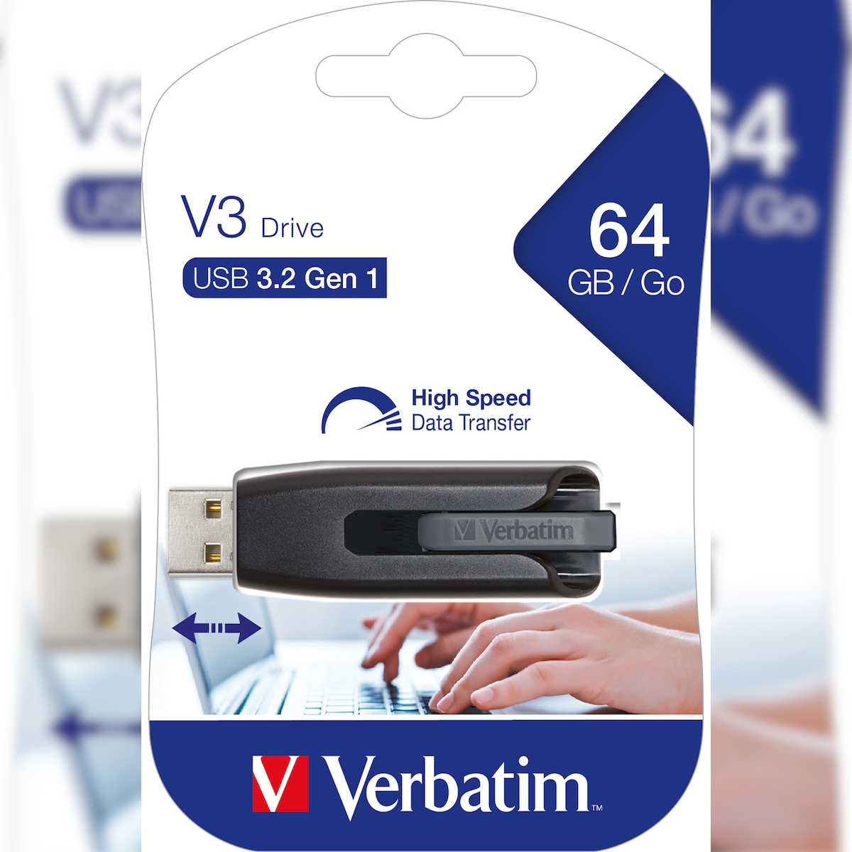 Verbatim USB 3.2 Stick 64GB, V3 Drive, grau Typ-A, (R) 80MB/s, (W) 25MB/s, Retail-Blister