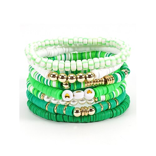 set di braccialetti di perline per il giorno di San Patrizio da donna, braccialetti con ciondoli in resina e lega, gioielli con lettere di trifoglio irlandese multi-stile per donna, perfetti per sfilate di festa, feste e abbigliamento festivo