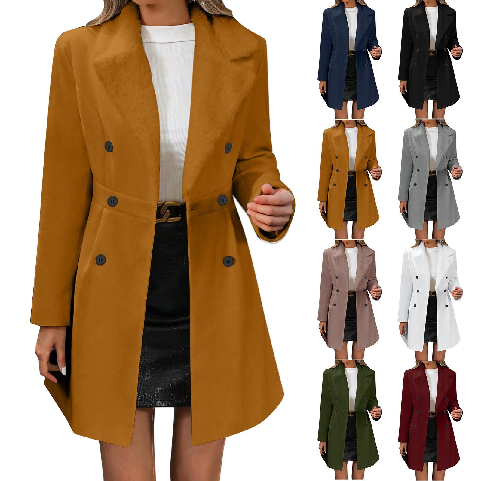 Women's Casual And Fashion Jacket Solid Color Lapel Double Button Coat cm white