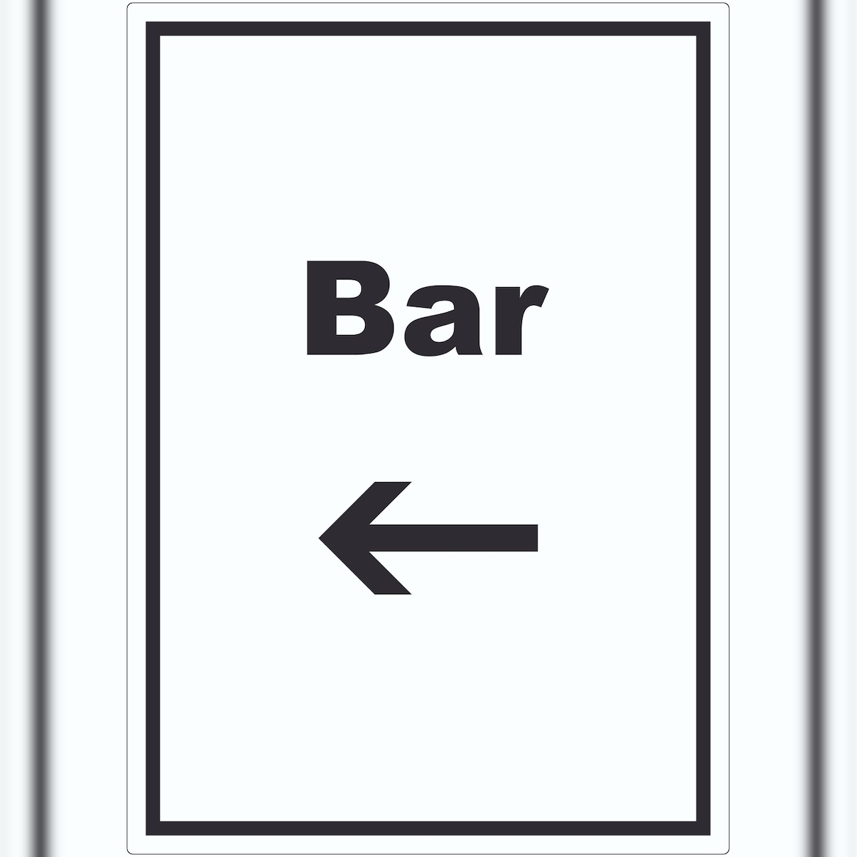 HB-Druck Bar Aufkleber mit Text und Richtungspfeil links Pub Kneipe hochkant A3 (297x420mm)