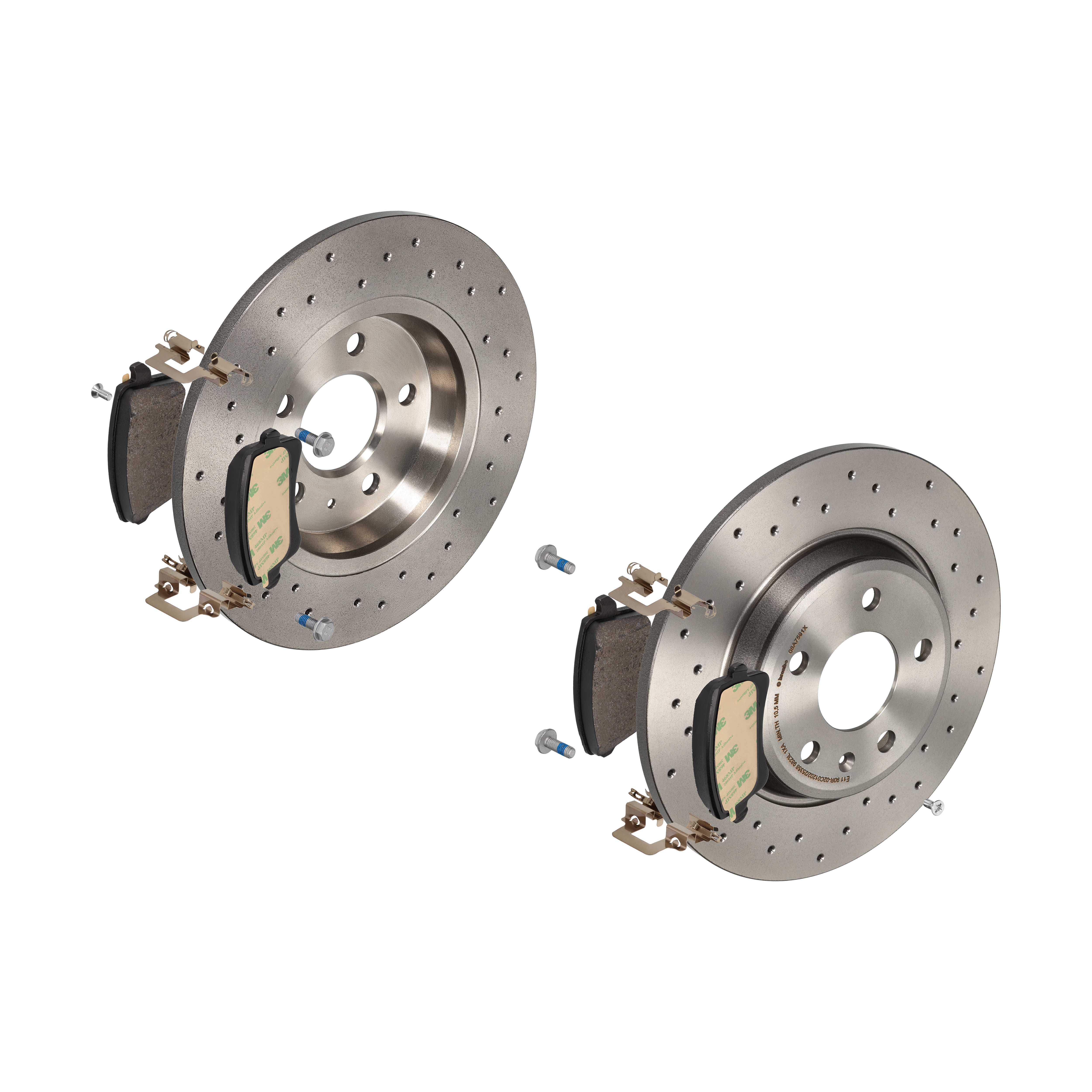 BREMBO Bremsensatz-Hinterachse XTRA LINE / STANDARD SK8K0F8QI9 Bremsensatz, Scheibenbremse hinten rechts links Gelocht 300mm für SKODA VW SEAT (FAW) A