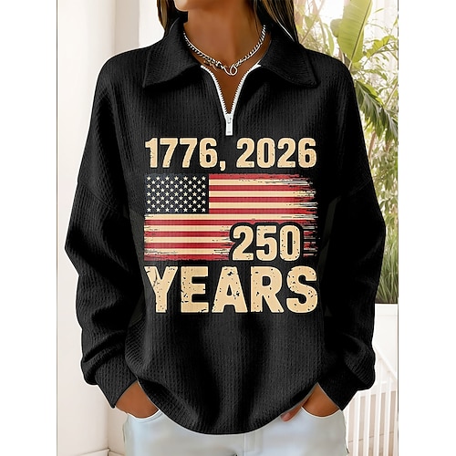 US America 250 Anni di Anniversario Felpa Waffle Uomo Bandiera Americana US Moda Quotidiana Classica Casual Collo Alto Zip a Quarto Lavoro Ufficio Casa Nero Bianco Blu Zip Up Autunno Inverno Designer
