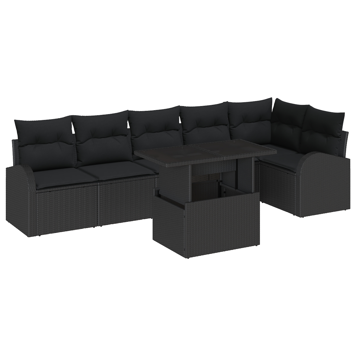 vidaXL 7-teiliges Gartensofa-Set mit Kissen in Schwarz aus Poly Rattan