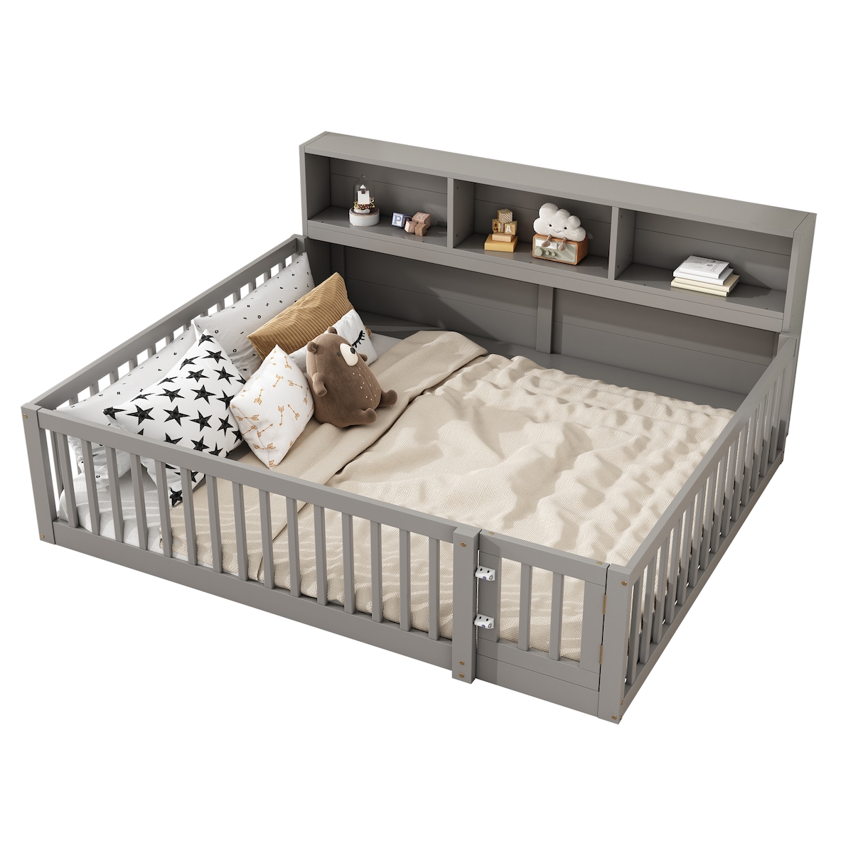 OKWISH Tagesbett 140x200 mit Stauraum aus Kiefernholz und MDF – Praktische Lösung für Ihr Zuhause in Grau, inklusive Sicherheitsgeländer