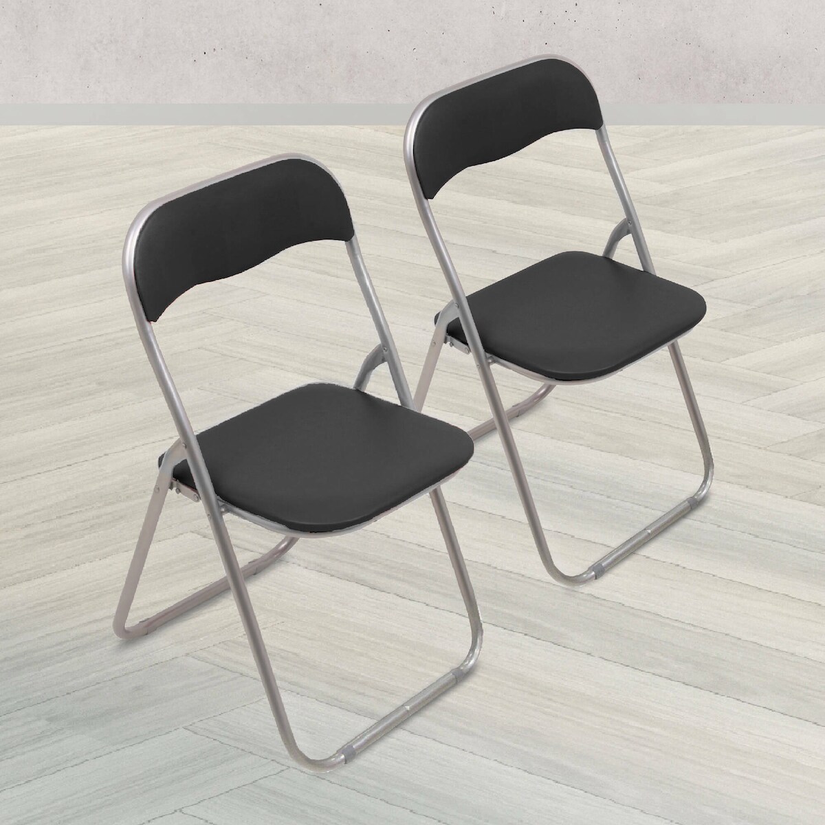 Dmora Set mit 2 Dgraf-Klappstühlen, platzsparender Sessel, Gästestuhl, Besprechungssitz aus Kunstleder, 43 x 47 x 80 cm, Schwarz