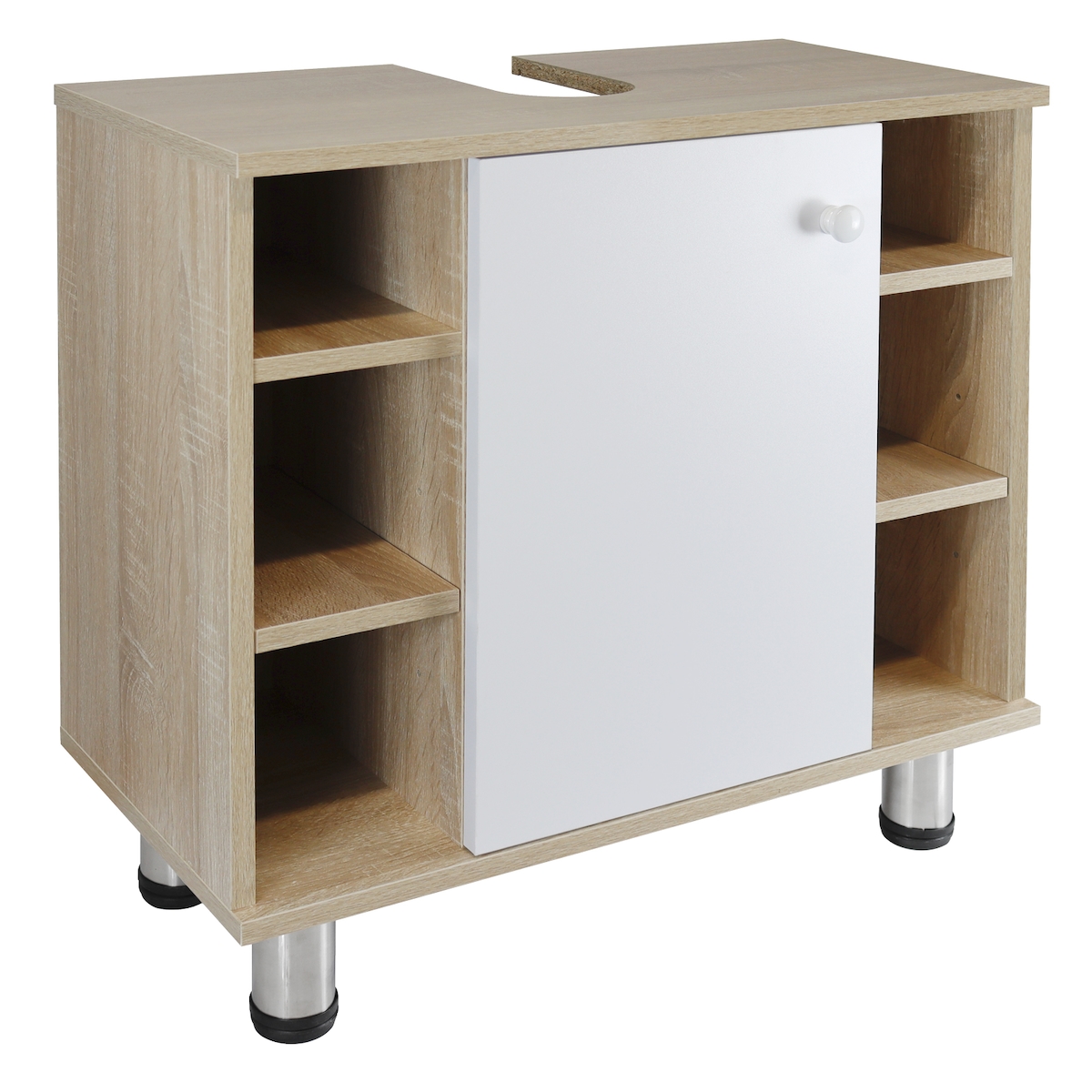 T-MAX Waschbeckenunterschrank `Berta` Holz/Eichen Optik eintürig, mit Seitenfächern