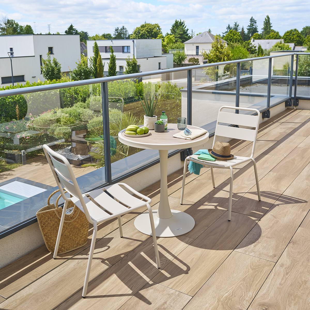 Table de jardin bistro OVIALON Effet bois Lin Argile 2 places - Aluminium traité époxy Hespéride