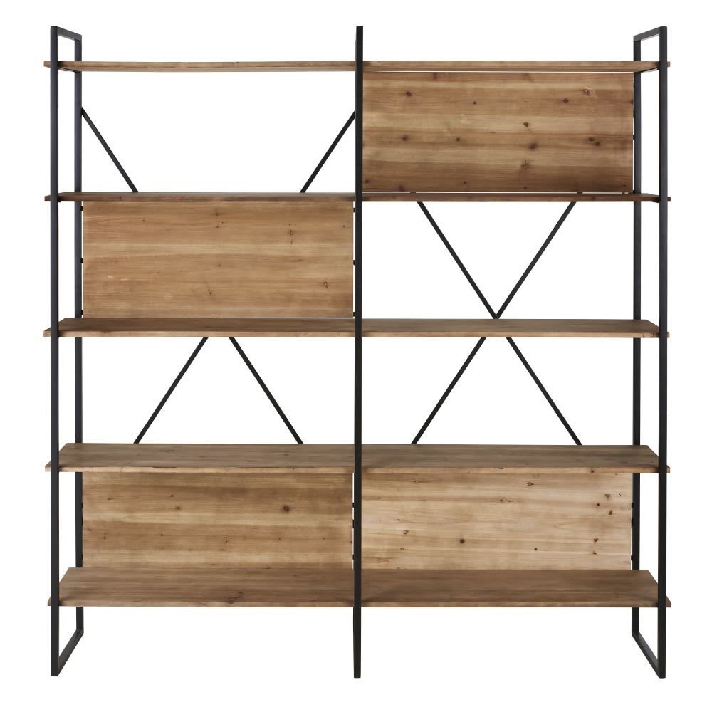 Etagère en bois de sapin et métal noir L176