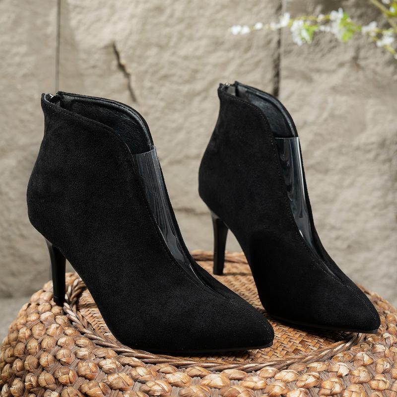 Fashion Vintage Pointed Toe Women Ankle Boots Fashion Elegant Back Zippers Short Booties Autumn Winter Ladies Concise High Heels Shoes cm black