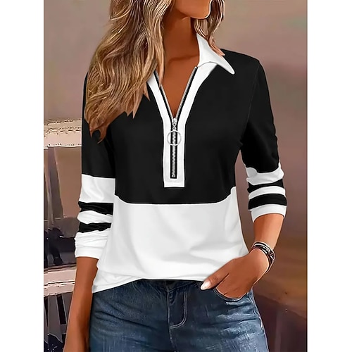 Per donna Blusa Cerniera A righe Elegante Casual Manica Lunga Collo ripiegato Top Regolari Quotidiano Blu Nero Vino Marrone Verde Primavera Autunno