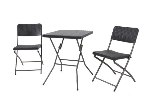 Lex 3-tlg. Balkon Set Stuhl Garten Terrasse Möbel Rattan-Optik klappbar anthrazit