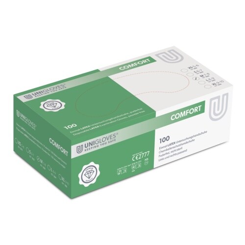 Unigloves COMFORT® aus Latex gefertigter Hygiene- und Schutzhandschuh M (7,0-8,0) | VE= 10 x 100 : M