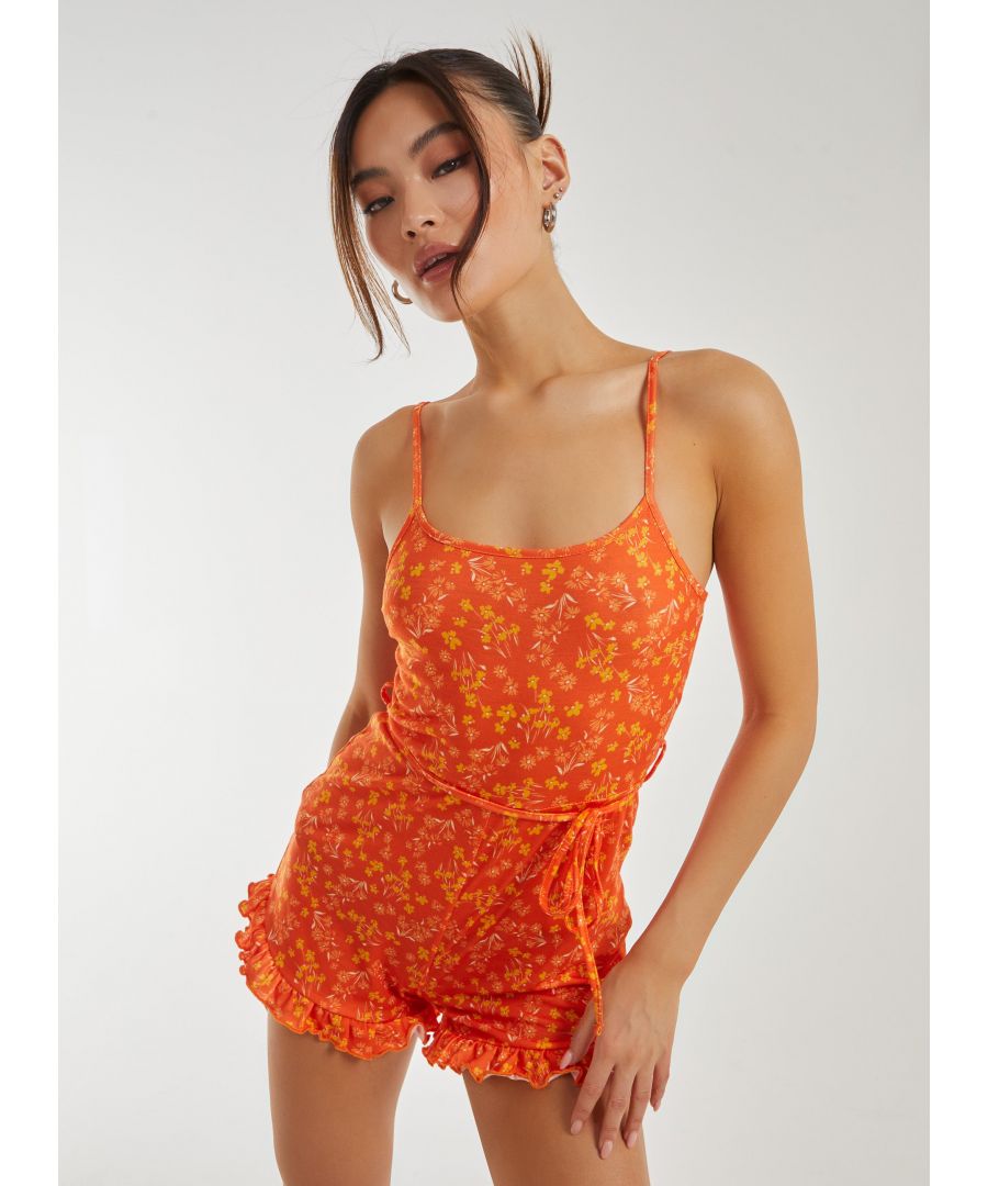Dorothy Perkins Womens Petite Orange Ditsy Frill Neck Ruched Front Jersey Midi Dress - Size 16 UK | Dorothy Perkins Sale | Discount Designer Brands