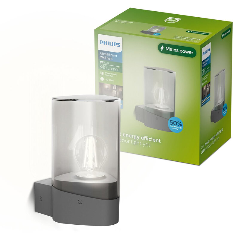 Philips Nayl Wandlamp - Buitenverlichting - E27 LED-lamp meegeleverd - Warmwit licht: 2700K - Antraciet - PowerShield coating