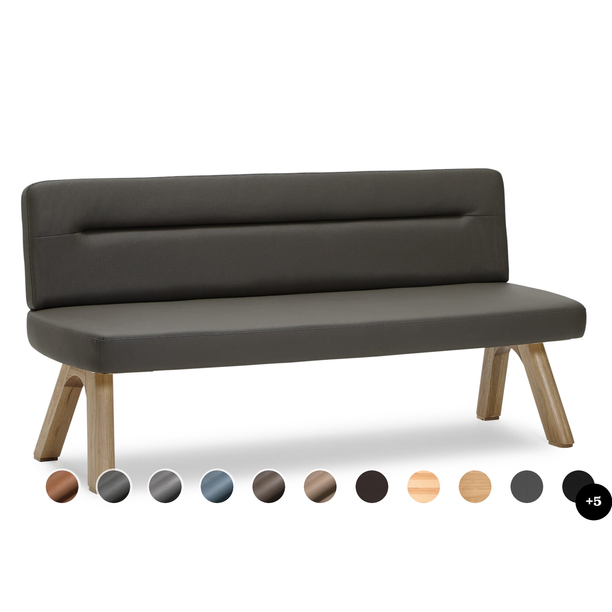 Schösswender »Ontario« 200 Polsterbank Variante A 162 cm / Echtleder MDR 31174 dunkelbraun / Kernbuche natur