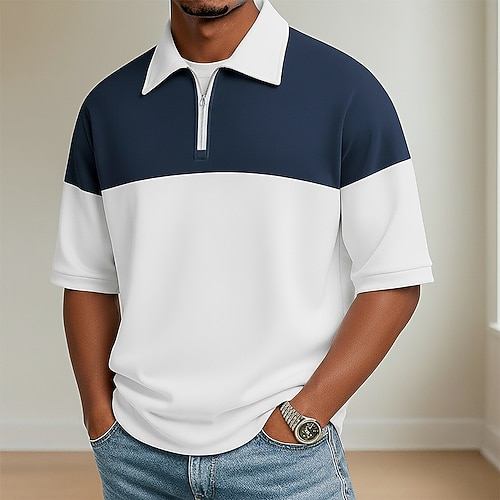 Per uomo Polo con zip a un quarto Polo da Golf Casuale Quotidiano Manica Corta Moda Essenziale Semplice Cerniera Estate Primavera Estate Vestibilità aderente Blu chiaro Bianco Rosa Blu reale Cachi