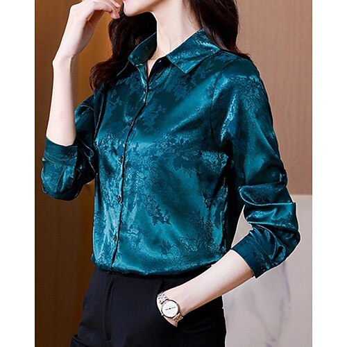 Per donna Camicia Elegant Elegante Raso/Satin Semplice Elegante Casual Manica Lunga Colletto a Camicia Top Regolari Quotidiano Uscire Bottoni Nero Rosso Blu marino Blu Reale Beige Primavera Autunno