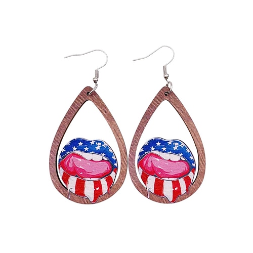 Orecchini a goccia in legno con bandiera USA per donne dell'anniversario dei 250 anni degli Stati Uniti gioielli pendenti patriottici leggeri disponibili in più stili boho casual per l'uso quotidiano