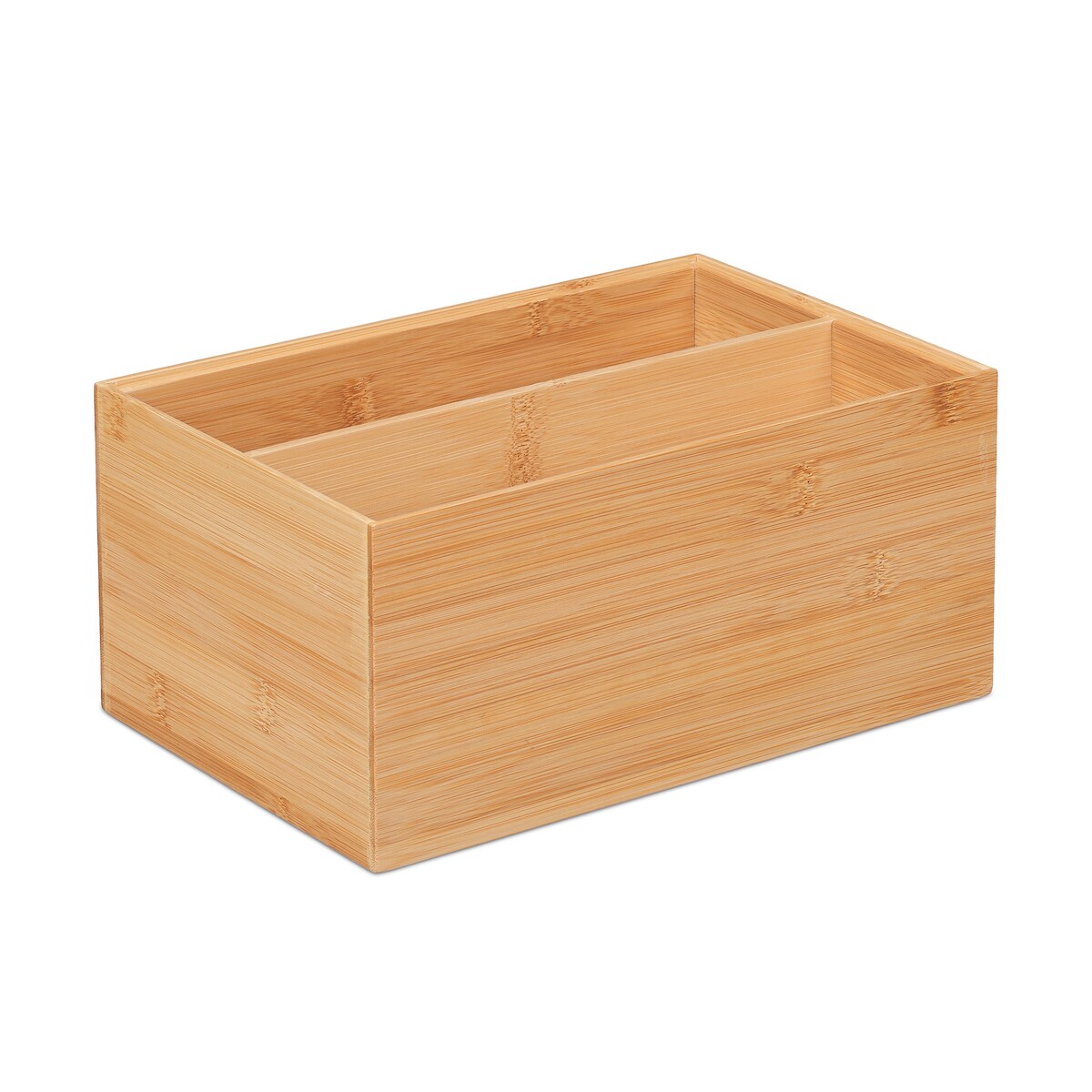 Relaxdays Aufbewahrungsbox Bambus, stapelbar, Bambuskiste mit 2 Fächern, stabil, HBT: 14 x 30 x 20 cm, Stapelbox, natur