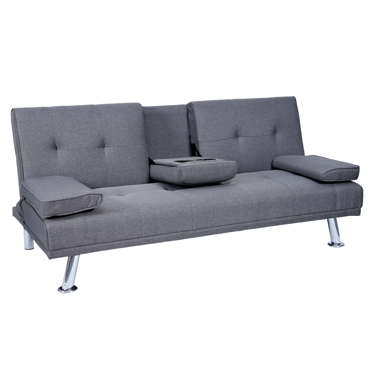 Mendler 3er-Sofa HWC-F60, Couch Schlafsofa Gästebett, Tassenhalter verstellbar 97x166cm ~ Textil, dunkelgrau