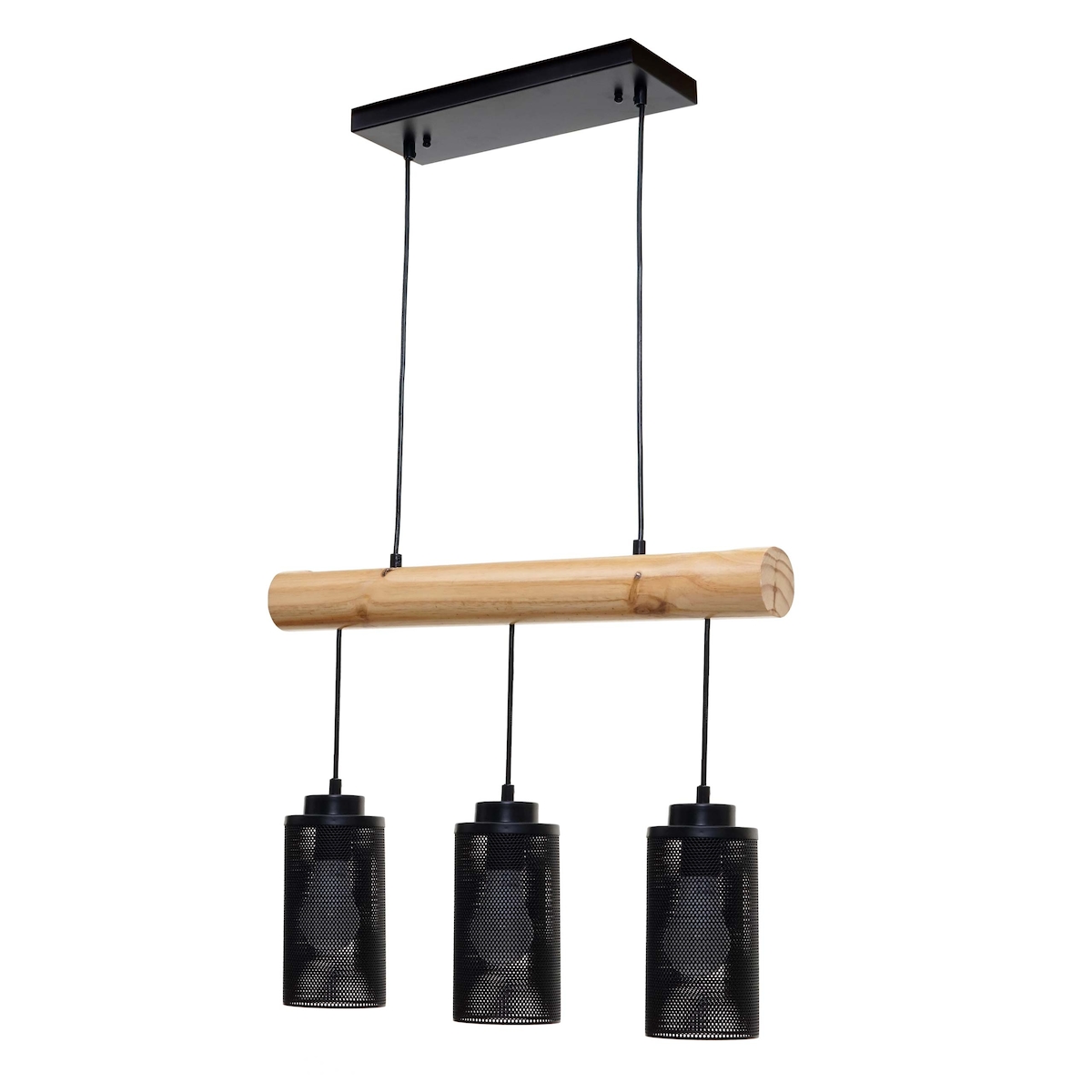 Mendler Pendelleuchte HWC-H83, Hängelampe Hängeleuchte, Industrial Vintage Massiv-Holz Metall schwarz ~ 3 Rohrlampenschirme