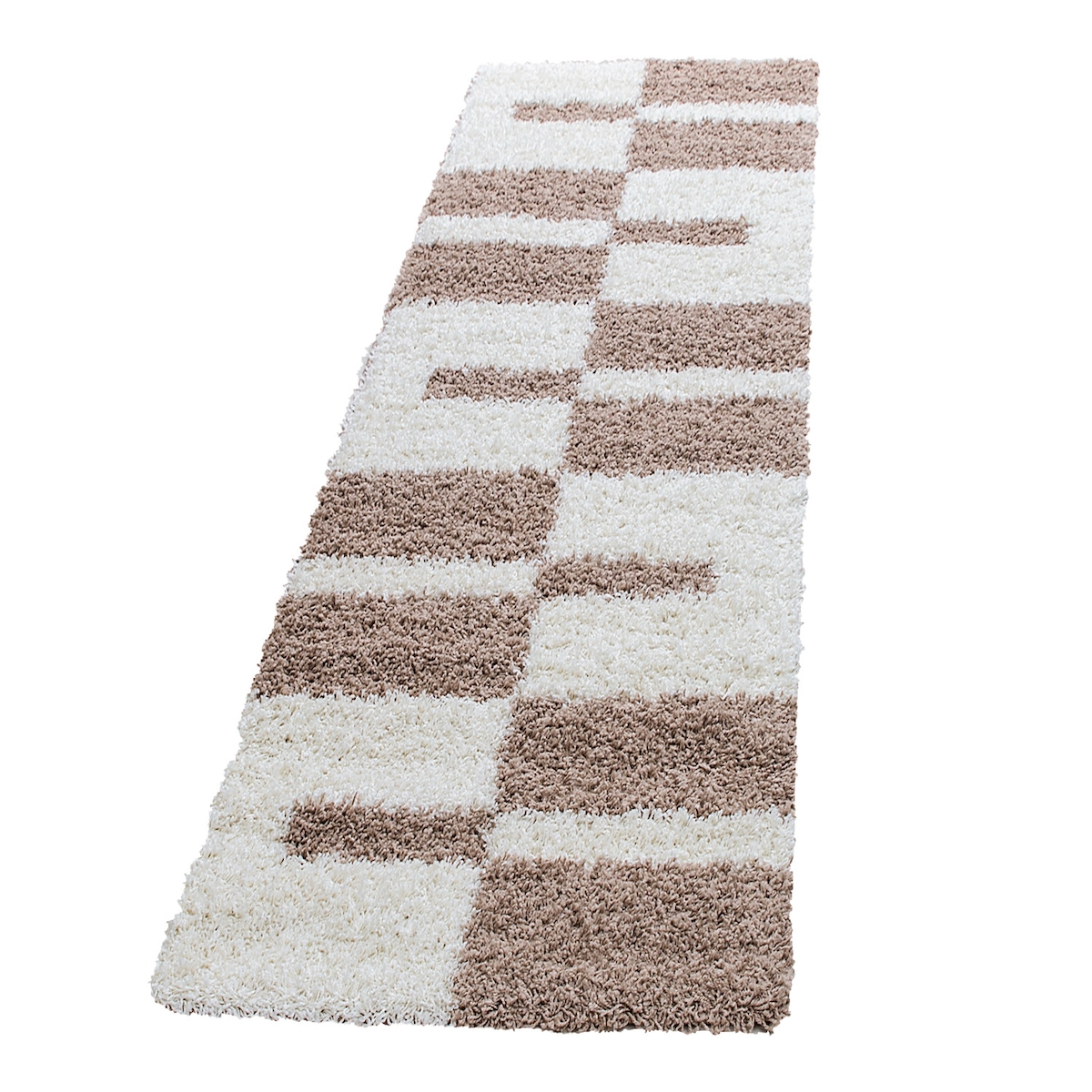Teppich Hochflor Shaggy Karo Design Polypropylen Wohnzimmer Beige Rund 80x80 | Kadima Design