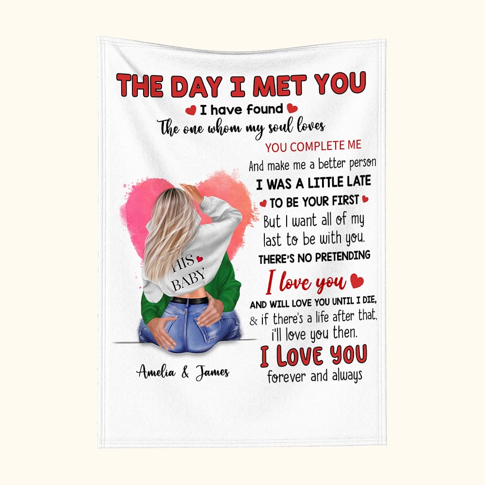 Personalisierte The Day I Met You Decke mit Aquarell Liebe Herz Romantische Home Dekoration Jahrestag Geschenk für Paar
